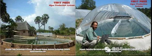Antenna是一個在非洲和亞洲推動螺旋藻防治營養(yǎng)不良項目的非政府組織?,F(xiàn)在有大約10個農(nóng)場由Antenna發(fā)起成立的,在8個國家自主運行。Antenna采用旋轉(zhuǎn)中心軸,利用風能或太陽能進行攪拌和清潔,通過采用持久耐用的優(yōu)質(zhì)培養(yǎng)材料建造,不需要過多維護、清洗,可使成本降低了20%。