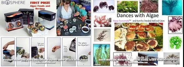 組織者-羅伯特·亨里克森和馬克·愛德華茲宣布從40名決賽選手中選出7名獲獎者。這代表著對我們未來的一種探索,利用藻類,比陸地植物提高30倍的生產(chǎn)力。這里是一些新興的主題,在藻類景觀和建筑設(shè)計的計劃和夢想中,新的藻類生產(chǎn)系統(tǒng)和美味的新食物從藻類獲得。